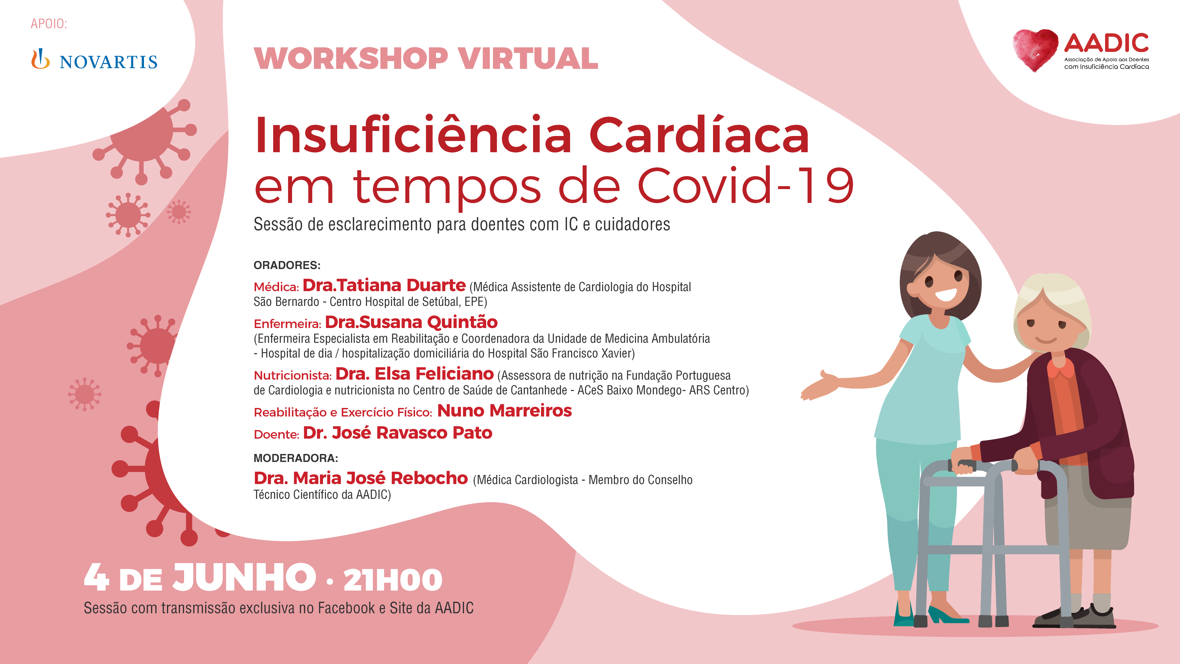 No dia 4 de junho, a Associação de Apoio aos Doentes com Insuficiência Cardíaca (AADIC), promove o Workshop virtual “Insuficiência Cardíaca em tempos de Covid-19”, através de uma transmissão exclusiva no seu Site e página de Facebook. A iniciativa é dirigida aos doentes com Insuficiência Cardíaca e aos seus cuidadores, sendo a participação gratuita.
