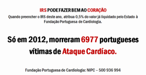 Ao apoiar a nossa causa não irá pagar mais IRS nem irá receber menos dinheiro. Assim, ao efectuar a sua Declaração de IRS ajude-nos, atribuindo 0,5% do valor já liquidado ao Estado. Basta preencher o quadro 9 do Anexo H, campo 901, indicando a Fundação Portuguesa de Cardiologia e o NIPC – 500 936 994. … Continue reading IRS pode fazer bem ao Coração